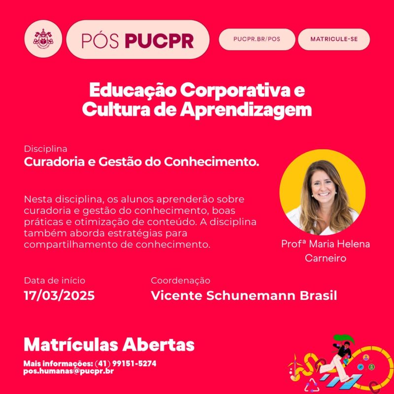 Encerrar uma jornada de ensino sempre me deixa reflexiva — e com o coração cheio. A disciplina que ministro na pós-graduação em Educação Corporativa e Cultura de Aprendizagem da Pontifícia Universidade Católica do Paraná foi mais uma dessas experiências que aquecem o coração. Um grupo cheio de profissionais de diferentes áreas, ávidos por aprender, por […]
